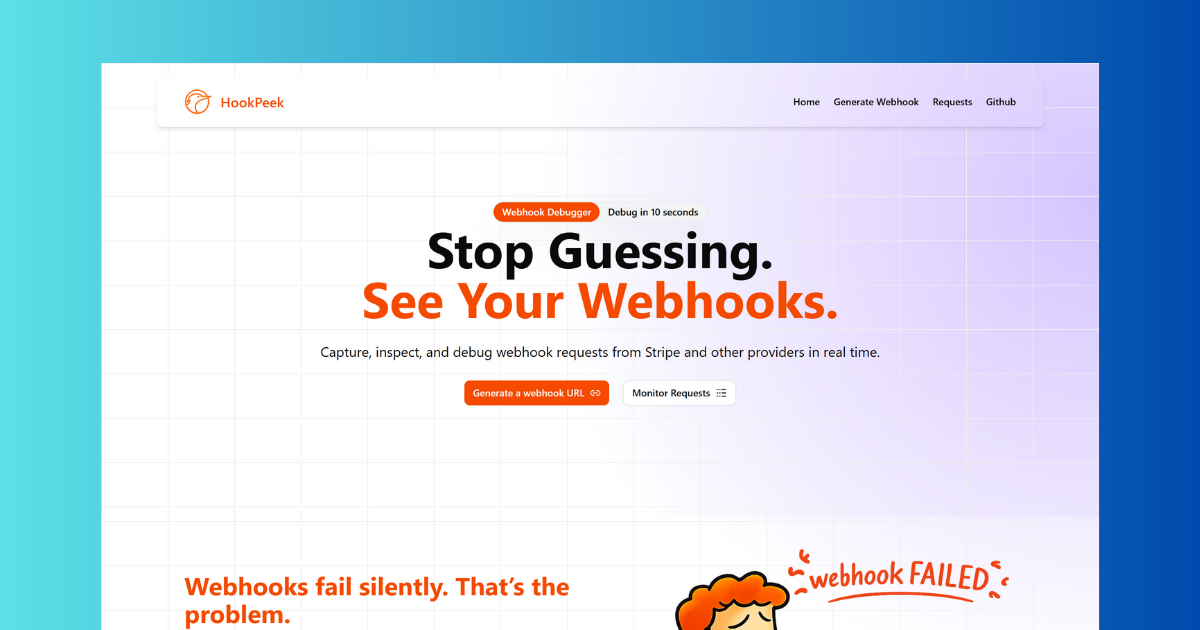 A webhook inspection and debugging tool to capture, inspect, and monitor real-time webhook requests from Stripe and other providers.
